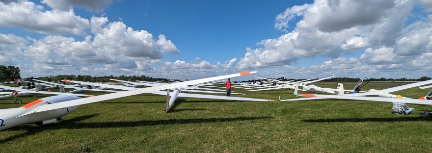 Nachdem der Berliner D-Kader schon fleißig den Wettbewerbssegelflug beim Lüsse Cup (inklusive des PEV-Abfluges) trainieren konnte, ging es für uns am 28. Juli mit Wohnwagen nach Stendal.Mirko von ESA-Systems war so freundlich und hatte meine treue ASW19 schon nach Stendal gefahren.Nach der Ankunft wurde das Camp abgesteckt und nach und nach trudelten auch die restlichen… Weiterlesen Quali Stendal 2023