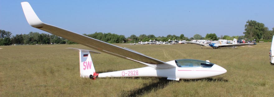 Der Wecker der Interflug Ultras klingelte Punkt 8 Uhr am Morgen. Nach dem Duschen und einem ausgiebigen Frühstück eilten wir zeitig zum Hänger, um die „SW“ in aller Ruhe aufzurüsten. Das Rüstwunder LS7 war wie immer fix zusammengesteckt. Nachdem alles an seinem Platz war, kümmerte sich Steffen um den Bordrechner, Christoph klebte ab und ich checkte den Flieger durch. So waren wir bereits eine gute Stunde vor dem Briefing fertig und halfen selbstverständlich noch den anderen Piloten. Um 10 Uhr begann dann das Tagesbriefing in der alten Halle.