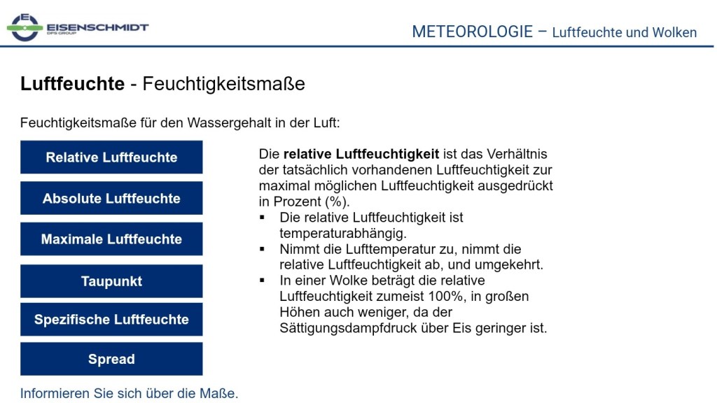Ich habe es ausschließlich auf dem Handy getestet. Nach der Anmeldung darf man sein Modul auswählen. Bei Meteorologie hat man danach die Auswahl zwischen acht Online-Kursen bestehend aus Atmosphäre und Temperatur, Luftfeuchte und Wolken, Luftmasse und Fronten, Wind und Drucksysteme, Niederschläge, Klimatologie – Großwetterlagen, Fluggefahren und Flugwettervorhersage und -produkte. Den Abschluss bildet ein Test.