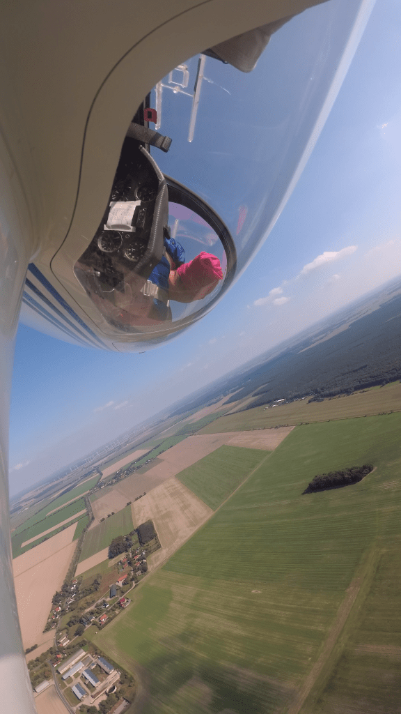 Und am nächsten Tag ging es dann los. Am Boden ging ich noch einmal die Abläufe mit Uwe zusammen durch, alles klar! Ab in den Flieger, Start, ab in den Gegenanflug, Box anmelden, Fahrt aufholen…und nun? Wie war das denn nun nochmal genau? Am Boden war eben noch alles klar, aber im Flugzeug hatte ich ein kleines Blackout. Glücklicherweise merkte mein Fluglehrer meine Verwirrung und übernahm nach kurzer Absprache den Flieger, sodass er es noch einmal vorführen konnte. Ahhh so war das!