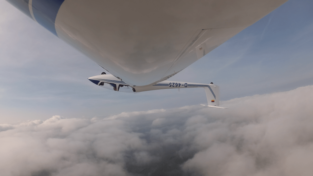 Aber zuerst kam die erste Rolle – links herum. 150km/h und los! Dieses Mal rollte es im wahrsten Sinne des Wortes wie am Schnürchen! Ohne Kursfehler steuerte ich die ASK21 einmal um die Längsachse. Jetzt folgte der letzte Turn des Programms. Beschleunigen, Vorspannen und ziehen! Jetzt korrigierte ich in der Senkrechten bewusst den Anstellwinkel. Auch dieses Mal kam die Fächerung schön herum und in der Abwärtslinie drückte ich ein wenig, um auch hier eine schöne Senkrechte nach unten zu zeigen. Abfangen, geilo! Als nächstes war die Rolle rechts herum an der Reihe. Zwar hatte ich in der ersten Hälfte einen kleinen Kursfehler, aber in der zweiten korrigierte ich auch diesen. Yippie!