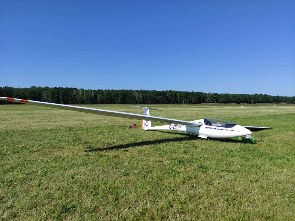 Da die Thermik schon früh beginnen sollte, fuhren wir ziemlich zeitig auf den Flugplatz und rüsteten „Vicky“ schon um 9 Uhr auf. Eigentlich wollte ich gegen 10 Uhr starten. Eigentlich…