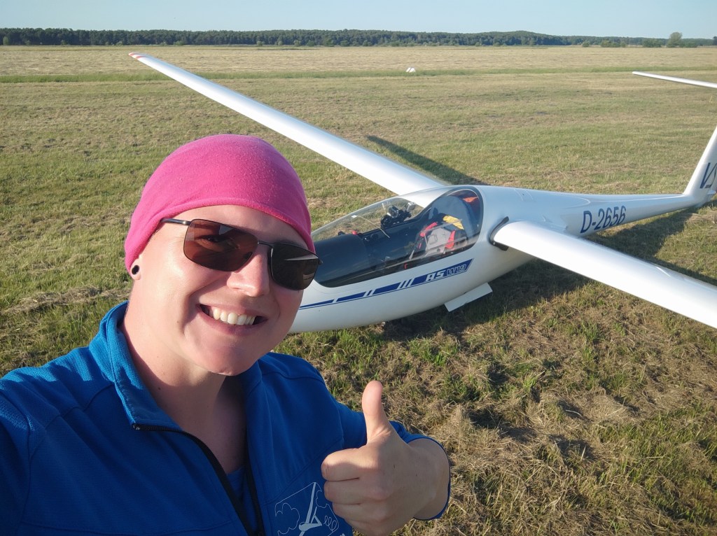 Zuerst eine Platzrunde, dann erst so spät losgekommen und dann auch noch den strammen Gegenwind. Sigurd hat die Aufgabe bei Genthin abgebrochen, und klopfte mir anerkennend auf die Schulter. „Sehr mutig“ meinte er.