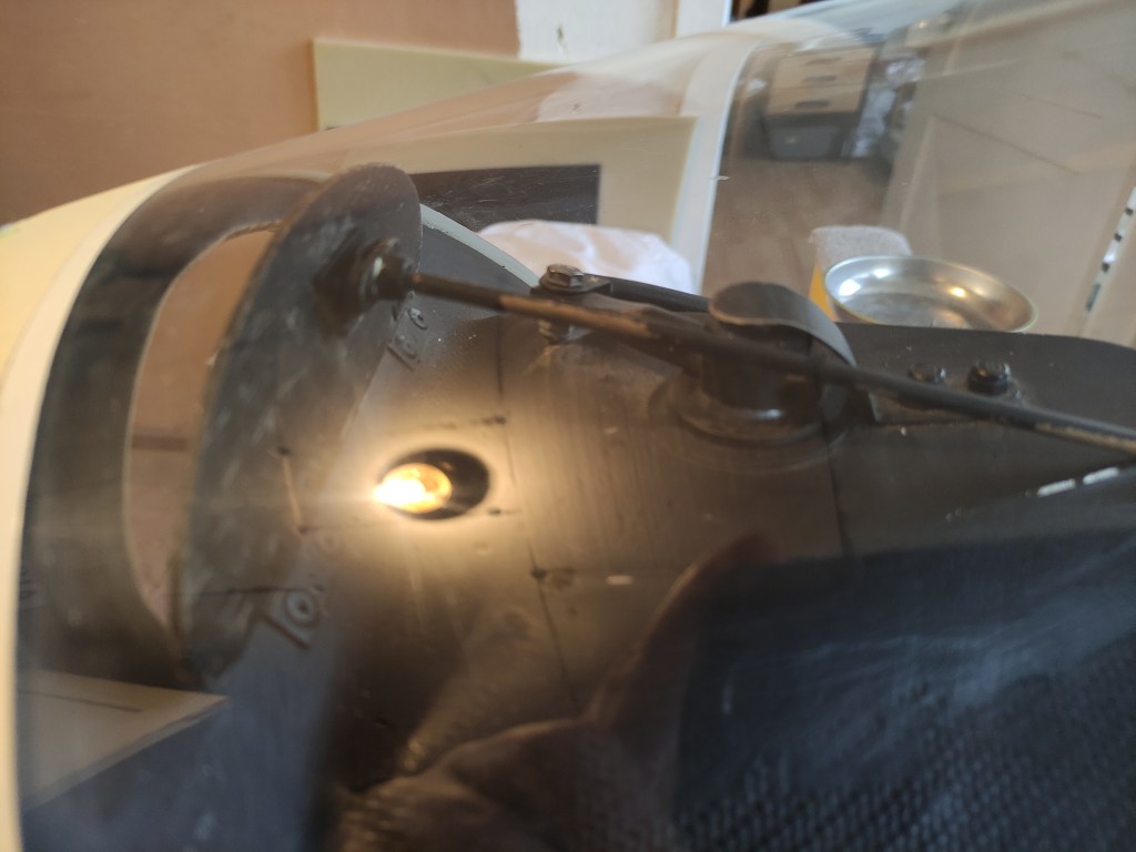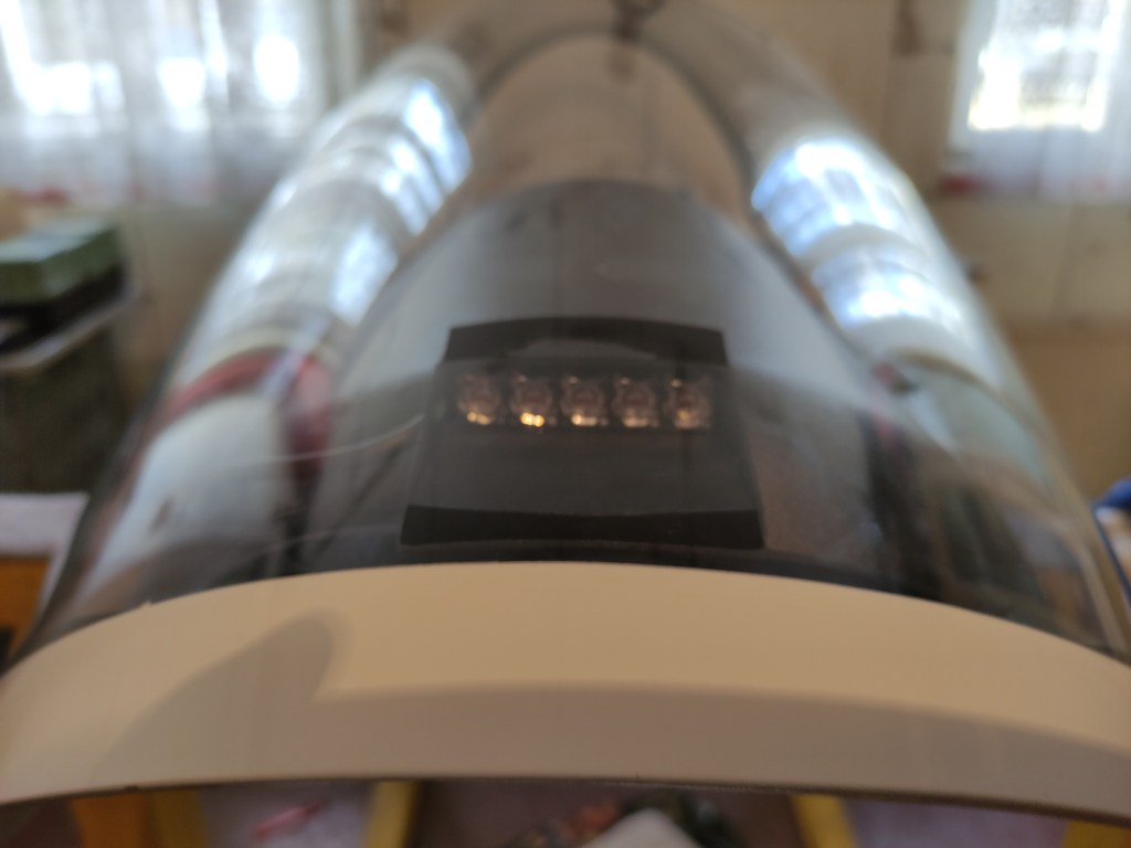 Anschließend den Haubenblitzer an den vorderen Haubenrahmen (ein bisschen Abstand musste ich lassen…die Lüftungsklappe ging nicht noch kleiner) kleben. Vorher die Gelegenheit nutzen und Haube ordentlich säubern!