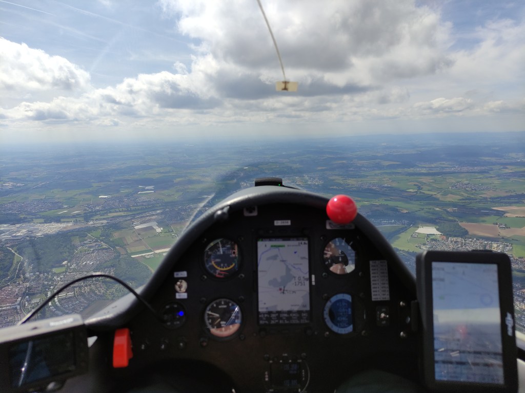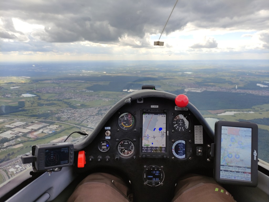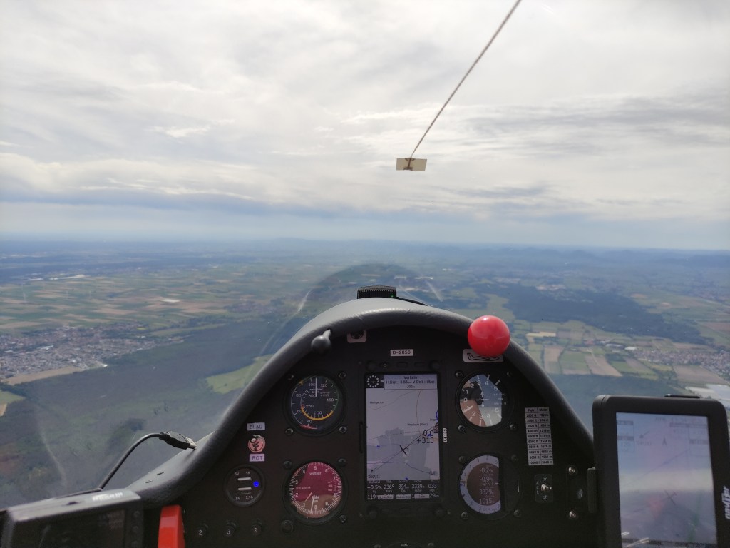 Ich muss gestehen, meine Nerven lagen relativ blank und meine Laune war im Keller. Nach dem vielversprechenden Start, so ausgebremst zu werden ist mehr als ärgerlich. Dementsprechend war ich ziemlich froh, als uns Ulrike in der Ls4 einholte und wir somit eine Profi-Boje hatten. Nicht sehr heldenhaft, aber ich wollte nunmal wenigstens wieder in Landau ankommen.