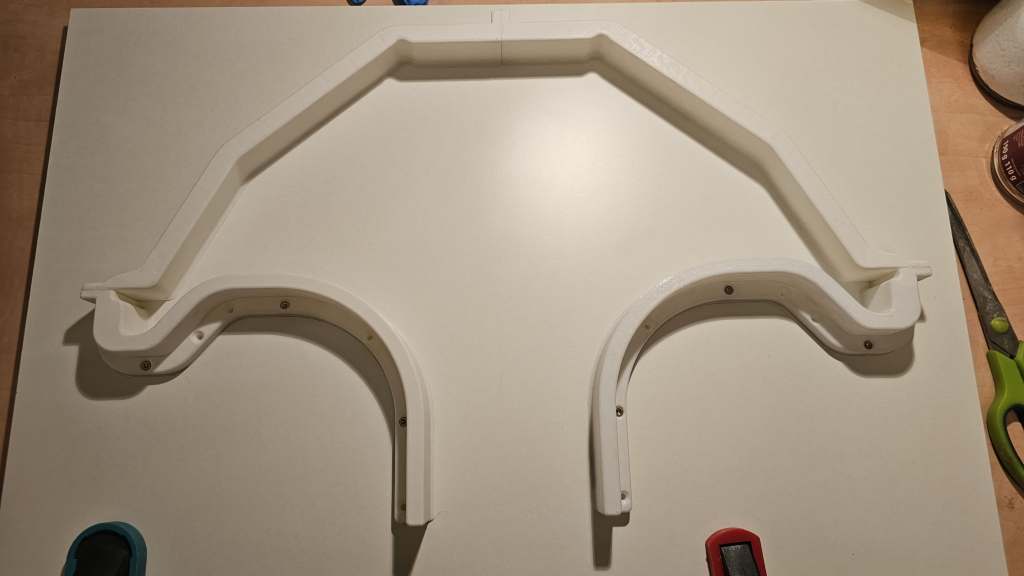 Ich würde die Form vom I-Brett noch etwas genauer machen, um nicht so viel anpassen zu müssen, außerdem sollte man sich klar sein wie viele Schichten Glasfaser man wirklich braucht. Auch sollte man einen sehr langsamen Härter für das Laminieren benutzen, mindestens 3h Verarbeitungszeit wäre sinnvoll. Auch würde ich einen 2K-Lack benutzen, aus Kostengründen eher den matten, aber glatten 2K-Lack, vom schwarz würde ich allerdings maximal zu einem dunklen grau abweichen.