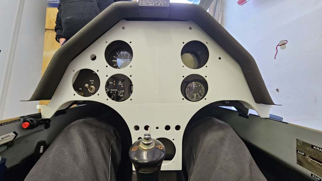 Warum ein neues Instrumentenbrett, nun ja, unser I-Brett hat zwar schon die höheren Beinausschnitte allerdings haben wir wohl leider unmögliche Körpermaße, sodass wir nur mit dem neuen I-Brett ins Flugzeug passen. Außerdem war das Instrumentenbrett noch original von 1993, da auch ein LXNAV-Gerät im Gespräch stand war die beste Option für mich ein komplett neues I-Brett zu bauen.