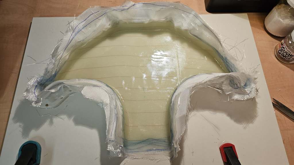 Wie der TwinAstir wurde das Instrumentenbrett „aus Harz zusammen geschmiert“. Erst mit dünnem Harz einstreichen, mit Schlumpfkacke oder auch Dickharz genannt, die scharfen Kanten ausfüllen, dann Glasschichten einlegen, erst dünnere dann noch ein paar dickere. Da ich zu viele Lagen reingelegt habe ist mein I-Brett erst mal zu dick geworden… also nochmal runterschleifen.