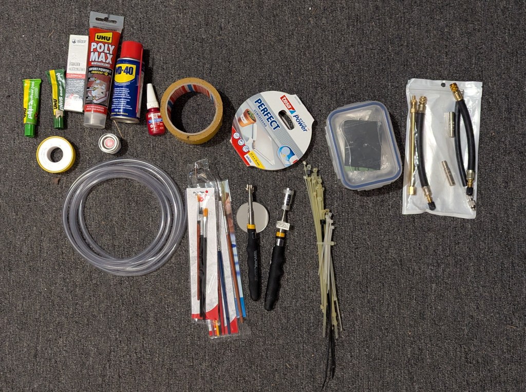 - Flugzeugpflegeprodukte (Brennspiritus, Wachs, Haubenreinigungsmittel, Fett/Vaseline, Polierpaste)