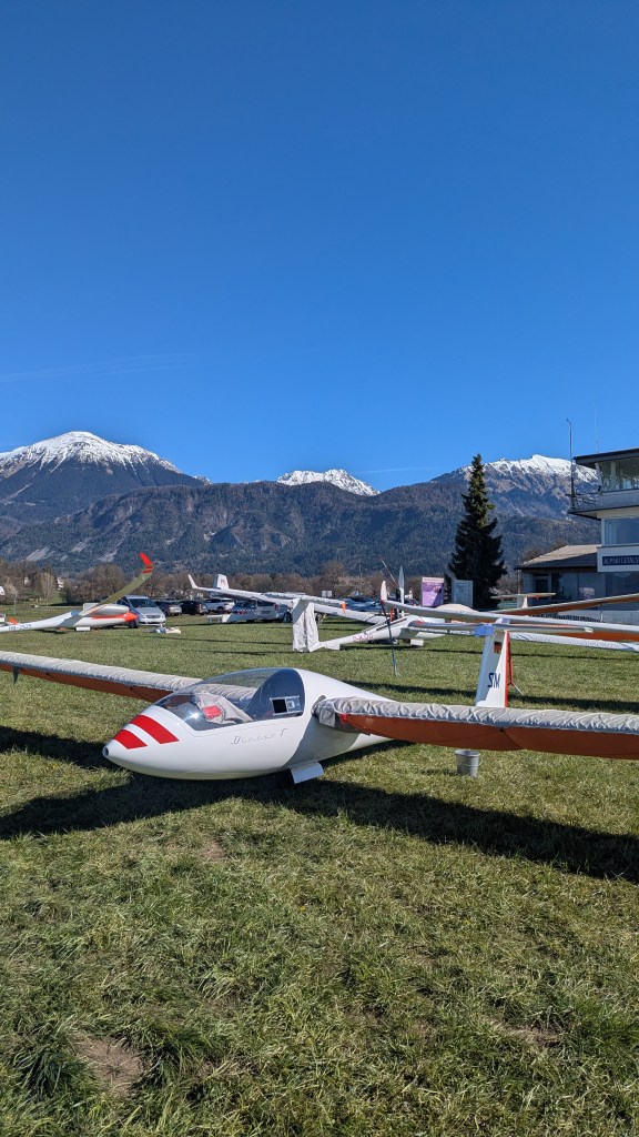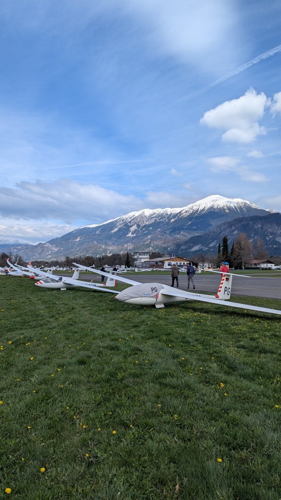 Die Überschrift sagt schon eigentlich alles. Es war ziemlich starker Nordwind angesagt, der zu heftigen Turbulenzen in unserem Tal führen sollte (waren wir doch im Lee der Karawanken). Nachdem die Trainer sich beratschlagt hatten, wurde der Tag für einsitzige Trainingsflüge gecancelt.