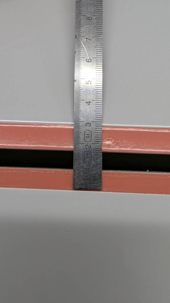 - Ruder S-Schlagband ausmessen. Dafür Querruder ganz ausschlagen und von Querruder unterer Kante bis ca. Hälfte Mitte Fläche messen (bei mir waren es ca. 25mm)