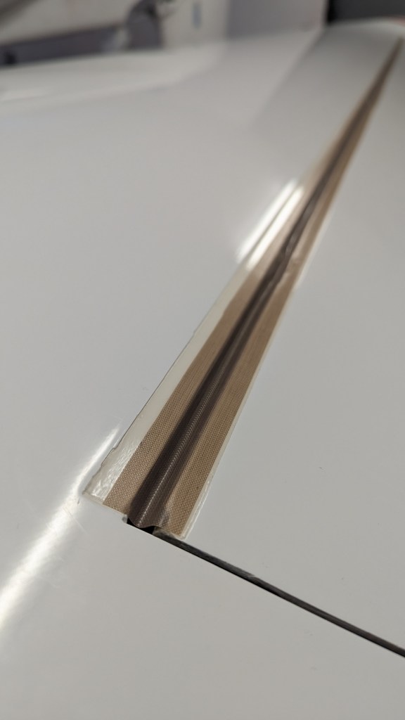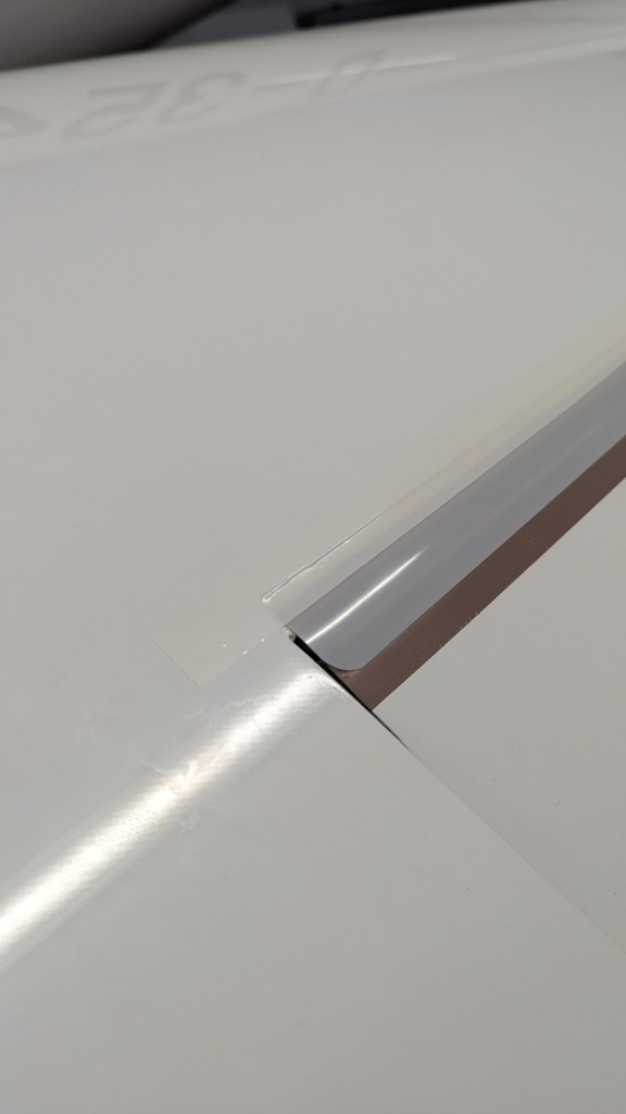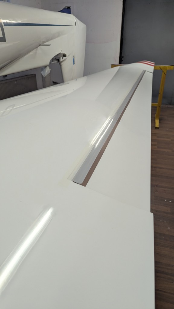 - Mylarband mit Spannung aufkleben, damit es sich schön wölbt und keine Falten zieht. Unbedingt vorher nochmal sauber machen und wenn möglich Baumwollhandschuhe tragen. Kanten zum Querruder abrunden.