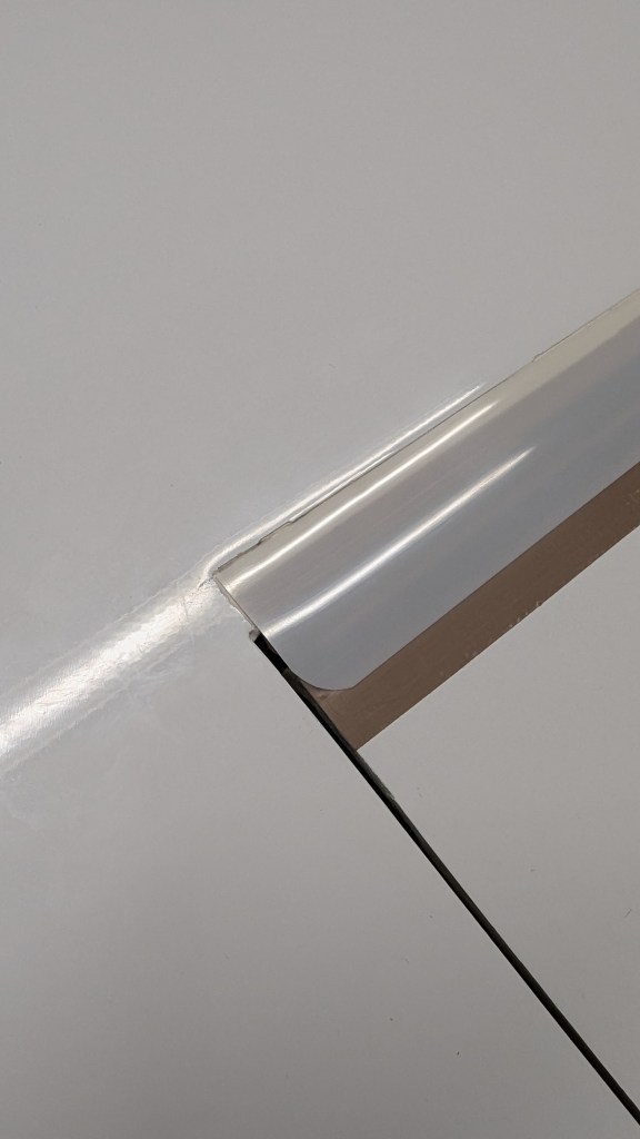 - Mit dem PVC-Klebeband abkleben. Soll ein bisschen über die Ecken hinausragen (bei mir ist es vielleicht ein bisschen sehr großzügig geworden)